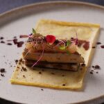 フォアグラと鰻をメインに紅玉のコンフィチュールにチョコレートのクラッカンをアクセントにしています