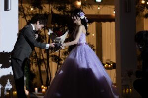 披露宴ではおふたりの好きな某テーマパークの曲と共に