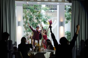 装い新たなおふたりへゲストからの歓声もなりやみません