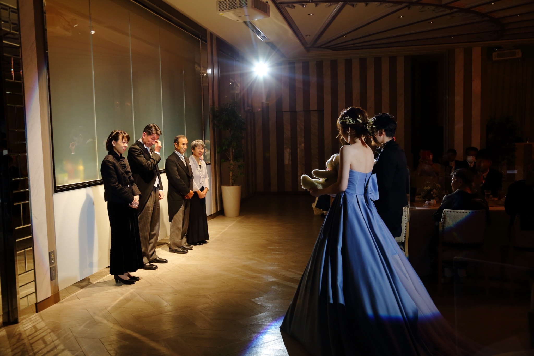 親御様へウェイトベアをおふたりの今までの感謝の想いを込めてお渡し頂きました