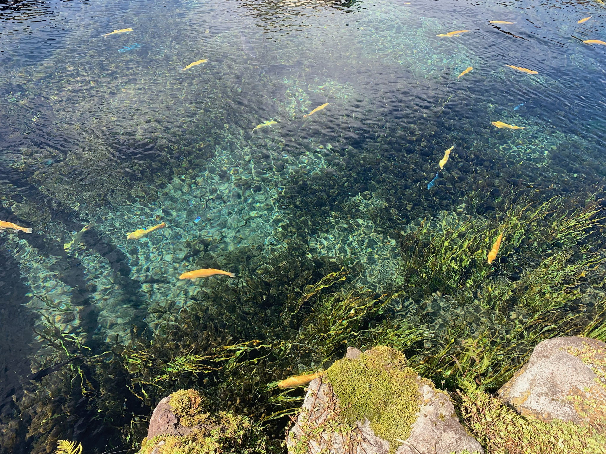 魚が泳いでいるのもよく見え 海藻が自然光で照らされとても美しい