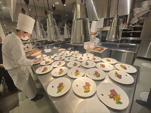 披露宴では多い時には100名以上のお料理を同時に創り上げます