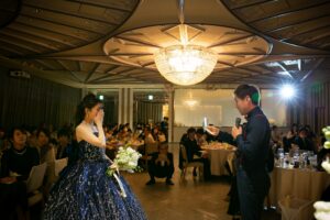 結婚式当日は沢山のゲストの方々に囲まれながら