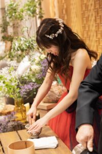 茶道のセレモニーでおふたりからゲストへのおもてなしなど
