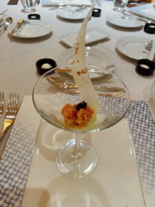 盛り付けがとても綺麗で美しくて、食べるとマグロとアボカド、そしてほのかに香るターメリックの風味が口の中に広がりとても美味しく、刺してあるじゃがいものチュイルを一緒に崩して食べることでサクサクとした食感も楽しめました!