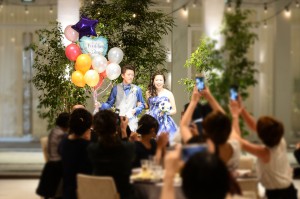 中庭からポップなバルーンを持って登場されたおふたり