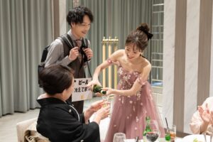 お色直し入場はビールを持って