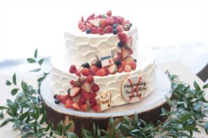 野球好きなおふたりは美味しそうなフルーツたっぷりのデザインに