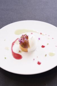 地元の食材と、旬の食材を使ったラピスコライユ特製のデザートです