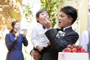 挙式終盤はこたろうくんとたおちゃんの力も借りて