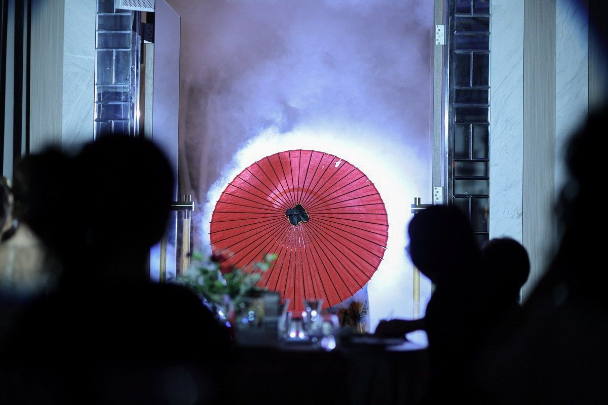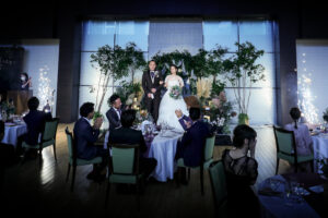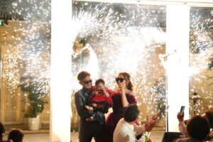 ゲストの皆様に祝福の花火を新郎新婦のおふたりに向けて
