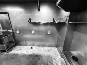 元あったお店からリノベーションをするという事で厨房機器や壁、床を綺麗にして新しい厨房機器を置けるようにしてきました!