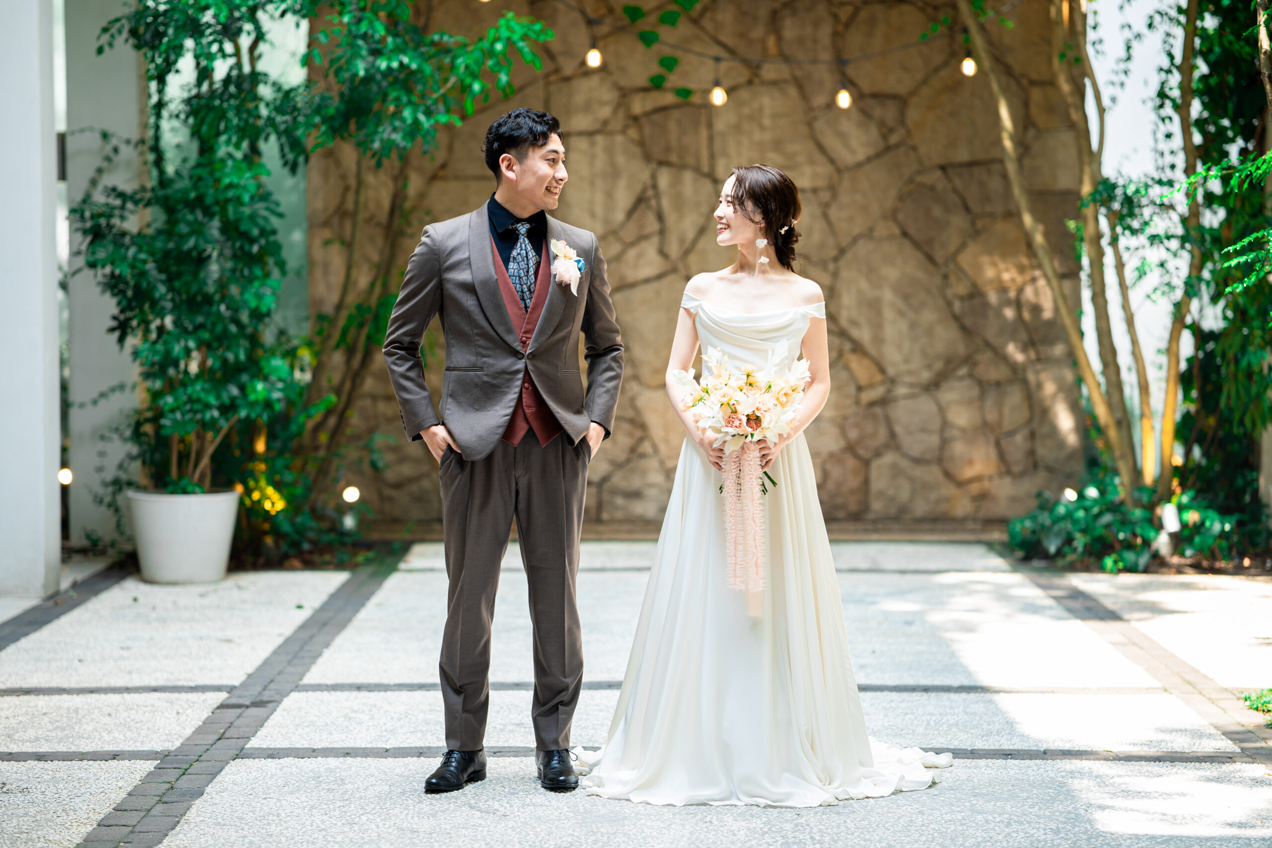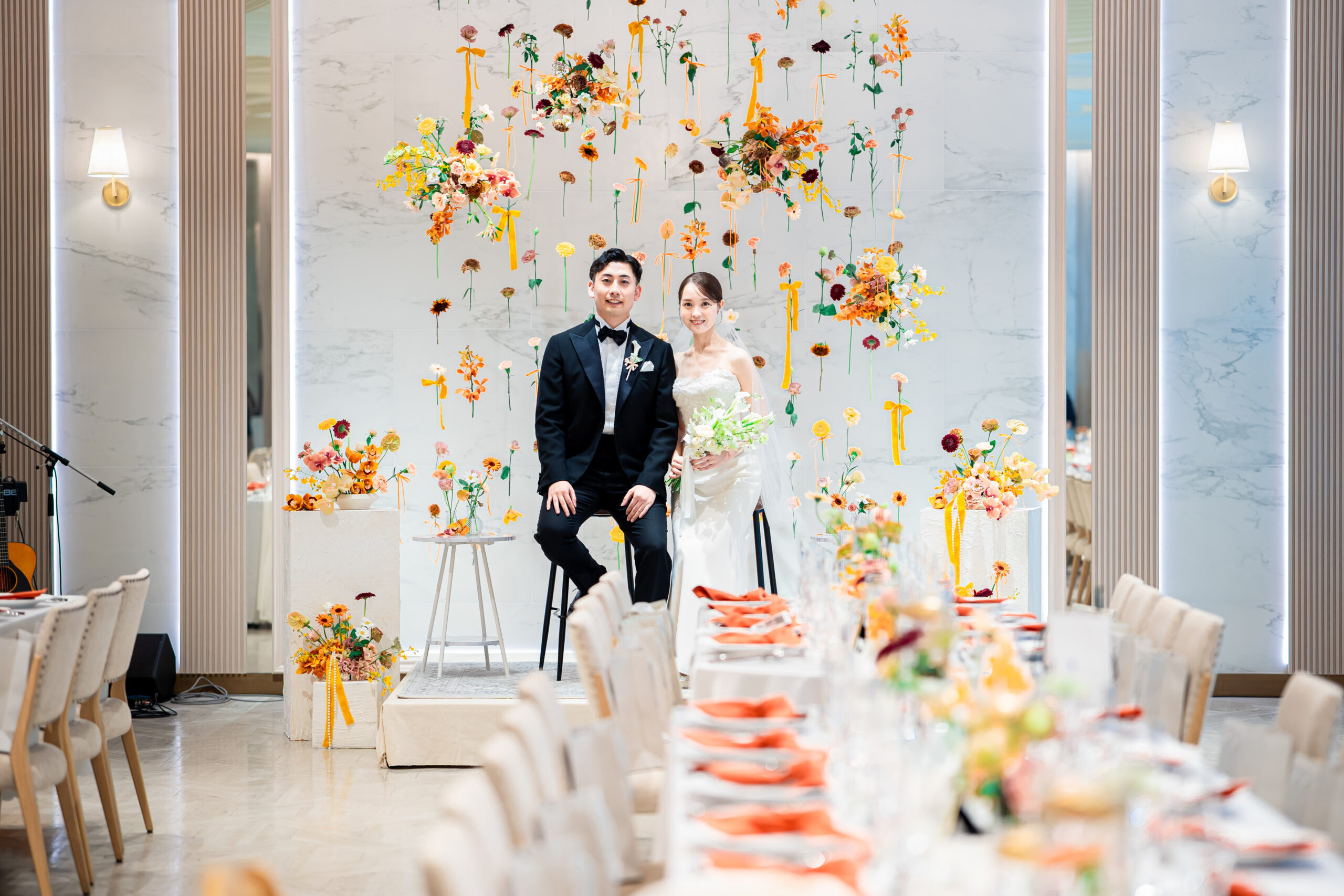 挙式とがらっと雰囲気を変えより素敵なコーディネートに◎