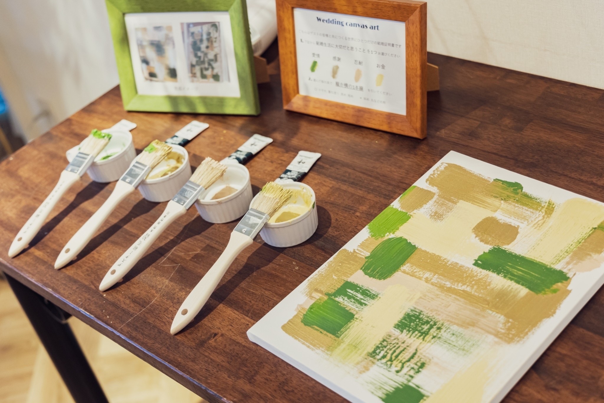 真っ白なキャンバスにゲストと共に色を塗っていくゲスト参加型の結婚証明書です♪
