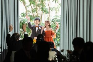 会社の先輩とご中座をされお色直し入場へ