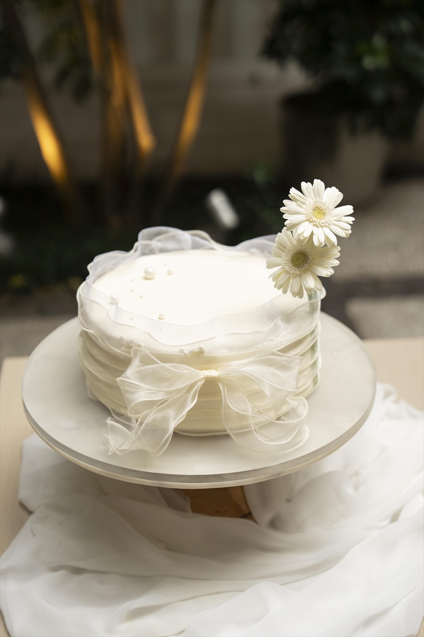 リボンとガーベラのデザインがとっても可愛いウエディングケーキ