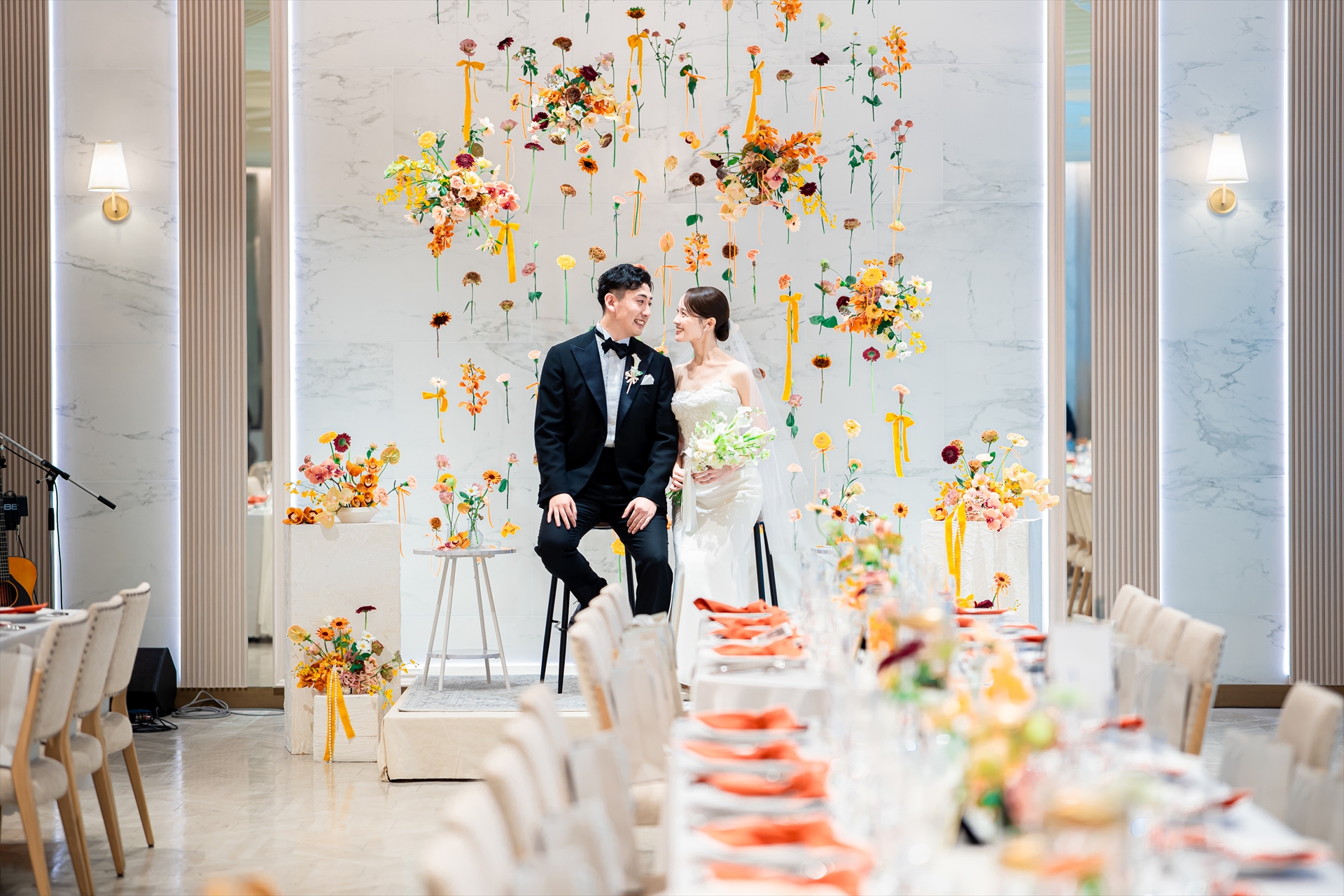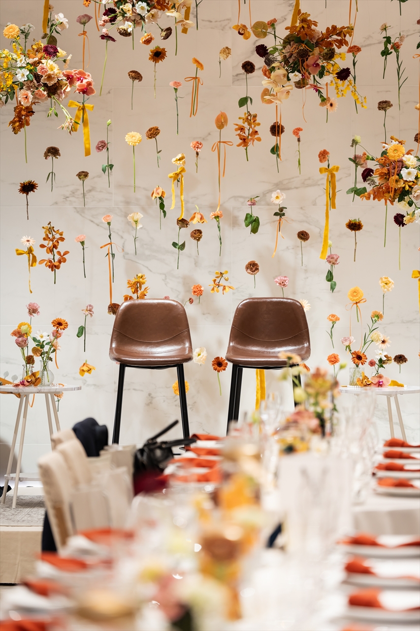 新郎新婦の背景になる “フラワーカーテン” もおすすめです◎