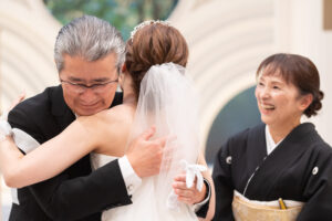 涙ぐむ親御様をぎゅっと包み込み