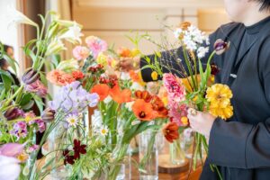 お花に囲まれながら楽しく体験や式場選び、結婚式をイメージすることができる