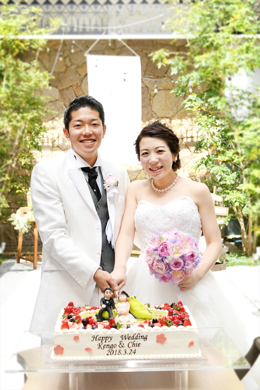 中庭に登場したおふたりオーダーのケーキ