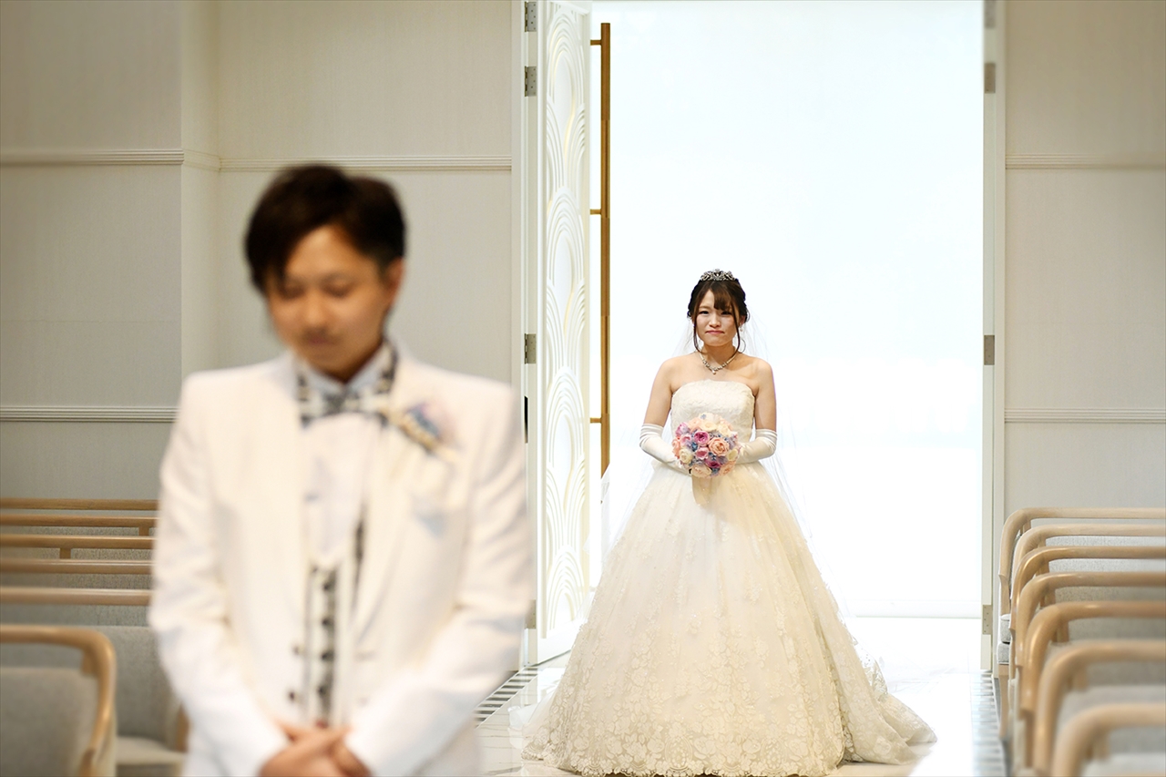 ゆっくり一歩ずつバージンロードを進んでいかれます