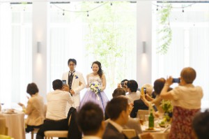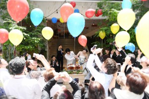 ゲストの皆様やスタッフからの大きな大きなおめでとうの祝福で披露宴はめでたく結びとなりました