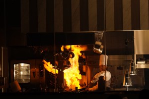 キッチンオープンではよしひろさんのフランベパフォーマンス!