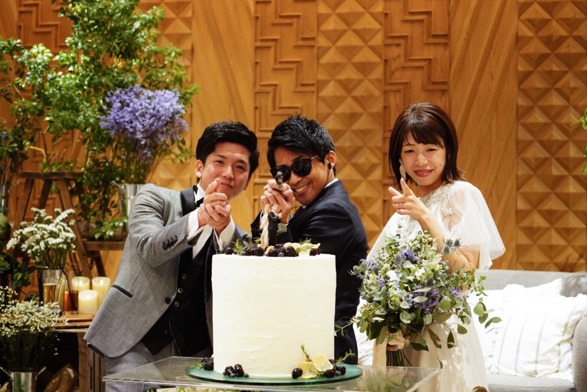 そして結婚式は おふたりが選ばれた【 人前式 】へと進みます おふたりを結びつけてくれた キューピッドのご夫婦に 誓いの言葉を問いかけていただきました