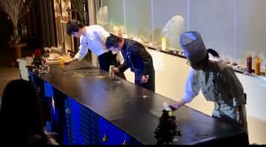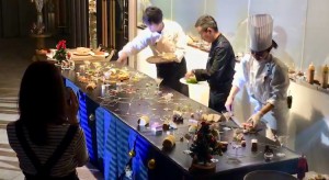 厨房スタッフがパフォーマンスをしながら目の前でビュッフェを創り上げて行きます。