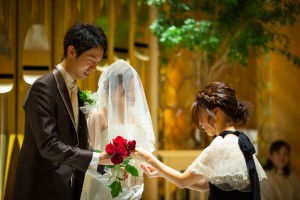『ダーズンローズセレモニー』は文字通り『12本のバラ』を使う演出です。