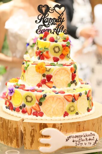 フルーツの断面で敷き詰められたカラフルなケーキに
