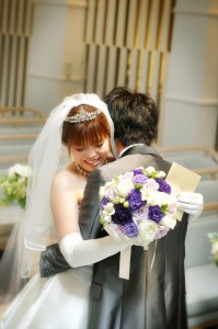 ラピスコライユのチャペルにて、新郎新婦として初めてお姿を見て頂き、