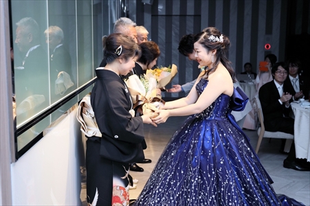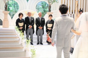 そしてそれぞれ大切な方とご中座して中庭をバックにお色直し入場です