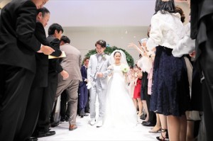 フラワーシャワーとおふたりご用意のライスシャワーで