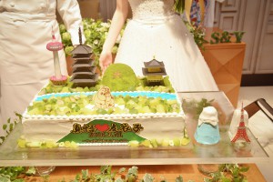 お2人が過ごした京都の町並みをケーキの上に再現しました