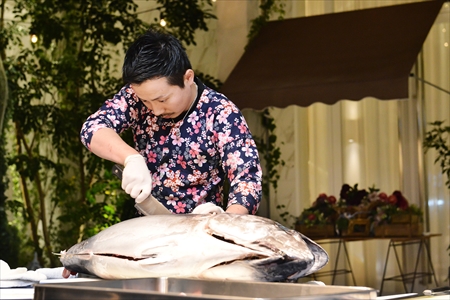 大江シェフがマグロ一頭をおふたりの目の前で解体し