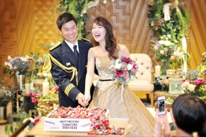 純白のウェディングドレス姿とはガラッと雰囲気を変え