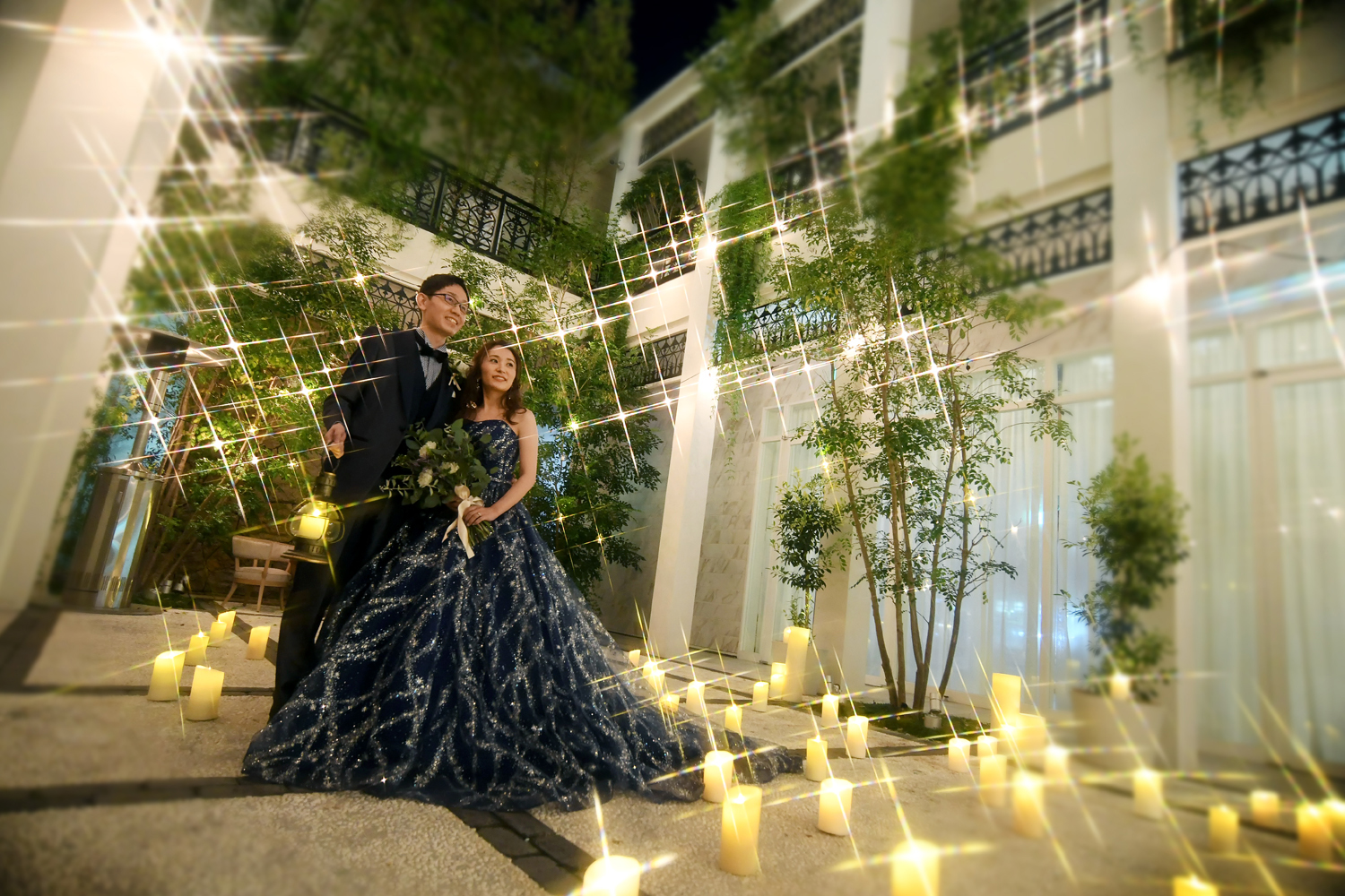 午後の結婚式ではナイトキャンドルの中からの入場で