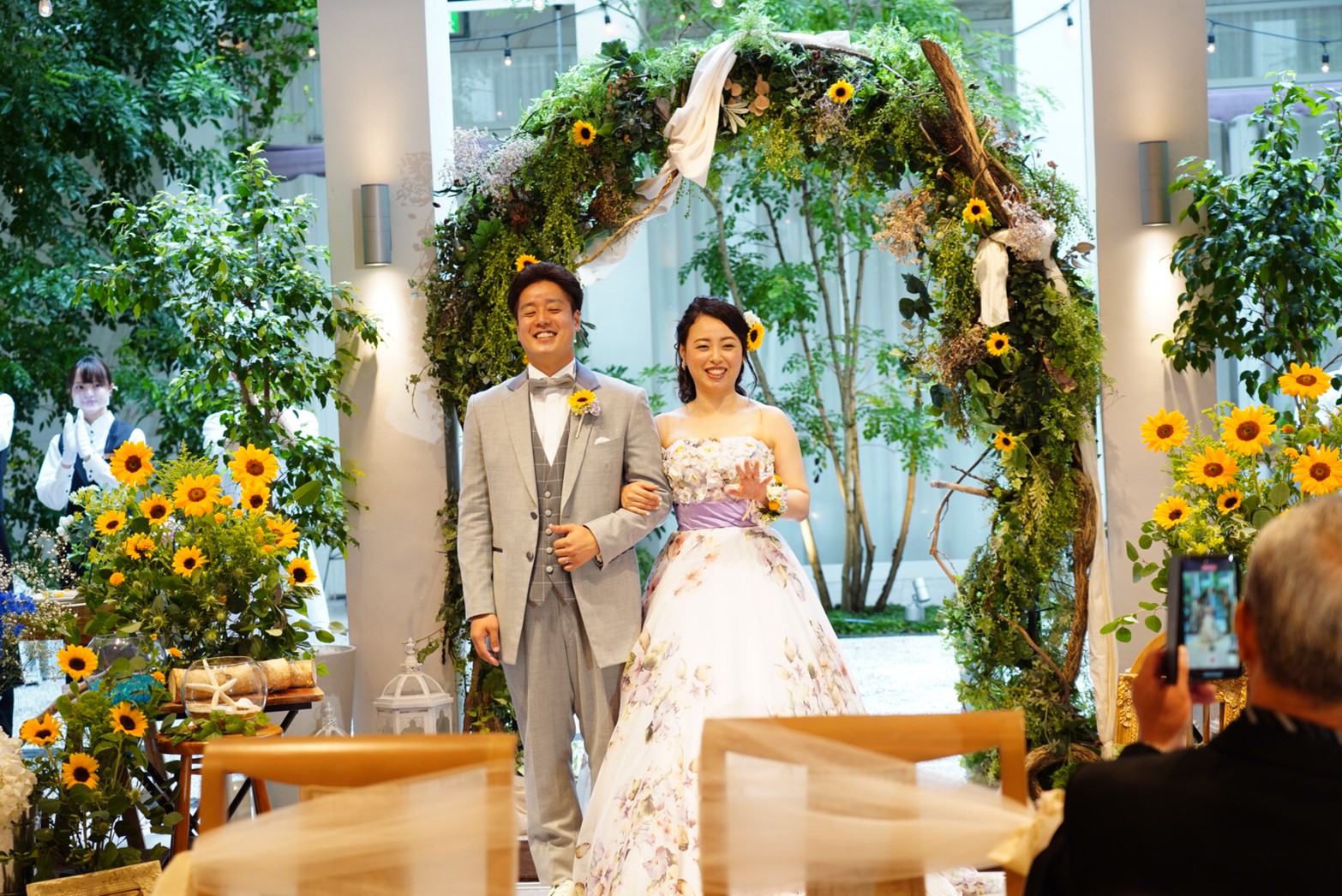 そして結婚式は大好きな元気いっぱいのひまわりの花に囲まれながら