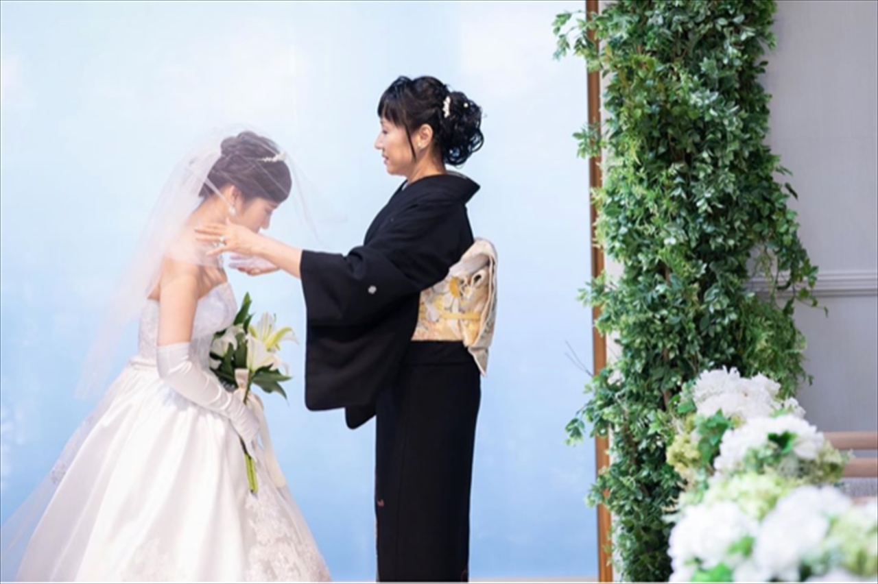 挙式の直前や、入場後に新婦様のお母様や大切な方に