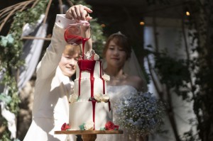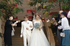 おふたりの挙式の後は中庭でのアフターセレモニー