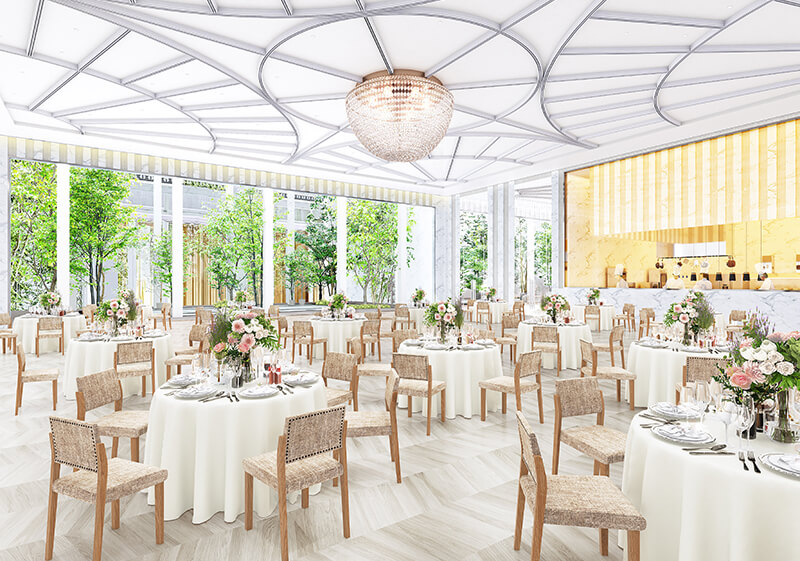 オープンエアスタイル緑と光あふれる、爽やかな心地よい空気感もゲストへのおもてなし