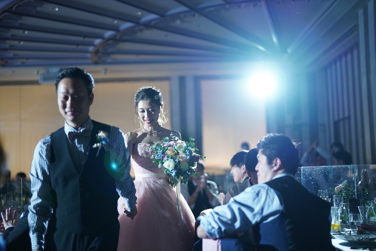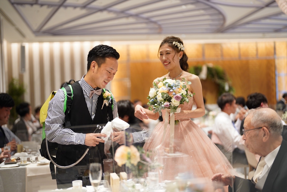 私たちは、全員が参加して楽しんでいただけるように電話番号ゲームやビールサーブなどを演出として取り入れました。ゲストの笑顔を直接ひとりひとり見ることができ、私達だけでなく、みなさまにも楽しんでいただける時間になりました。