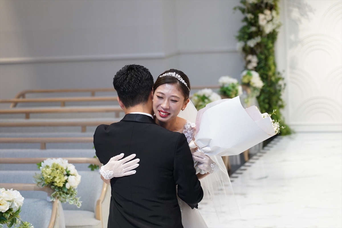 結婚式の始まりの瞬間「ファーストミート」にてお手紙をお渡しいただきお互いの想いをツナグお時間を創りました。夫婦としてのはじまりの日、はじまりの瞬間は笑顔と涙にあふれた瞬間となりましたね。