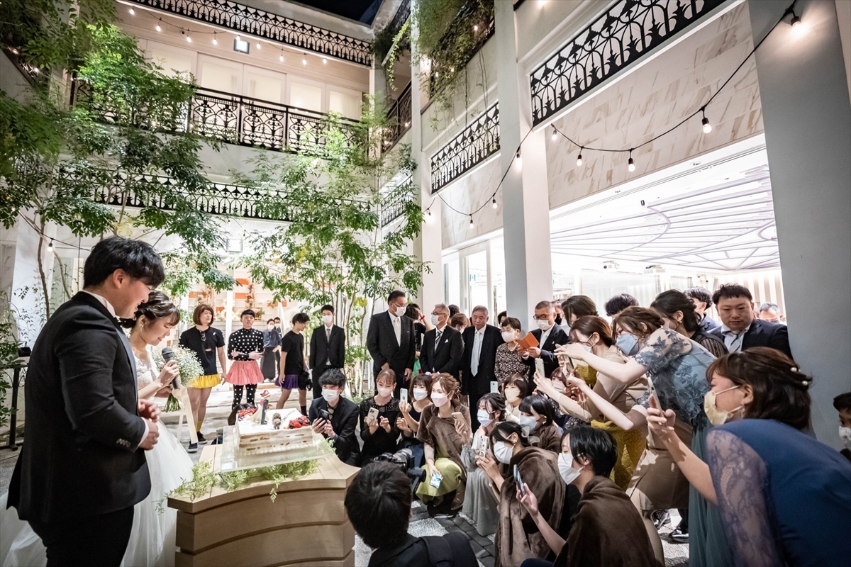 おふたりの愛犬ファントム君にリングドックをしてもらったり、共通のご友人が多かったので歓談の時間をしっかり取り、おふたりらしい式になりました。