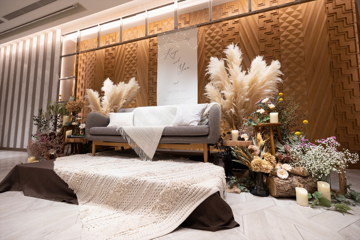 他にも、結婚式のテーマにあわせてフェザーシャワーに星を混ぜたり、待合室の飾りつけにもふたりらしさを出しました。