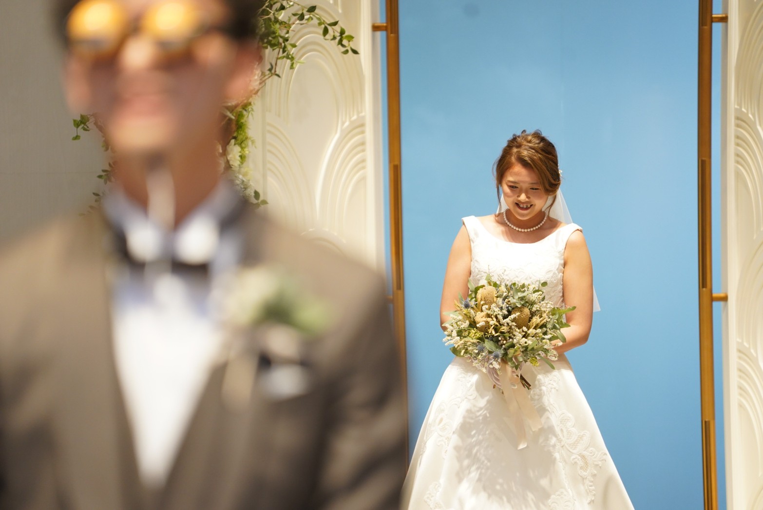 会場見学時から伺っていた「堅苦しいのは嫌なんです」「とにかく皆と笑っていたい」「ありきたりなことは避けたい」という言葉。”結婚式だから特別に”ではなく、”いつも通りラフな状態で当たり前の日常のように笑い溢れる一日になるように”そんな想いも込めて挙式・披露宴のお打ち合わせをしてきました。こだわりポイントは【ゲストの表情】ですね!ゲストの表情を見ておふたりの想いがしっかり届き楽しんでいただけていると、当日実感することが出来ました。
