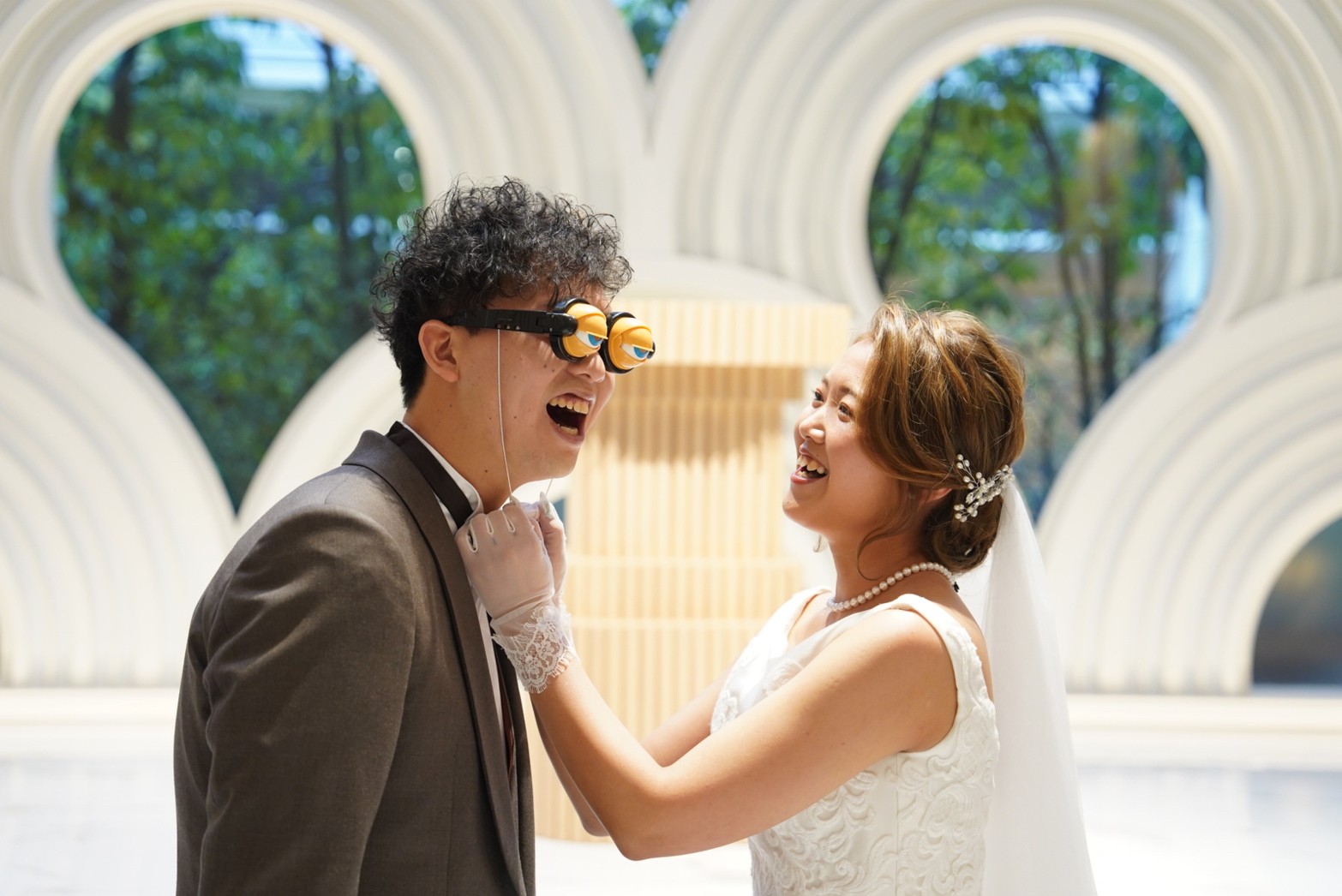 ”ユーモア” ”笑い”に溢れたとっても素敵なおふたり。おふたりと会場見学で初めてお会いした日は今でも鮮明に覚えています。少人数を予定していた結婚式はいつしか2倍になり、フォト婚からしっかり内容やこだわりを詰め込んだ結婚式となりました。結婚式当日もおふたりの周りには笑いとゲストからのたくさんの愛で溢れていました。