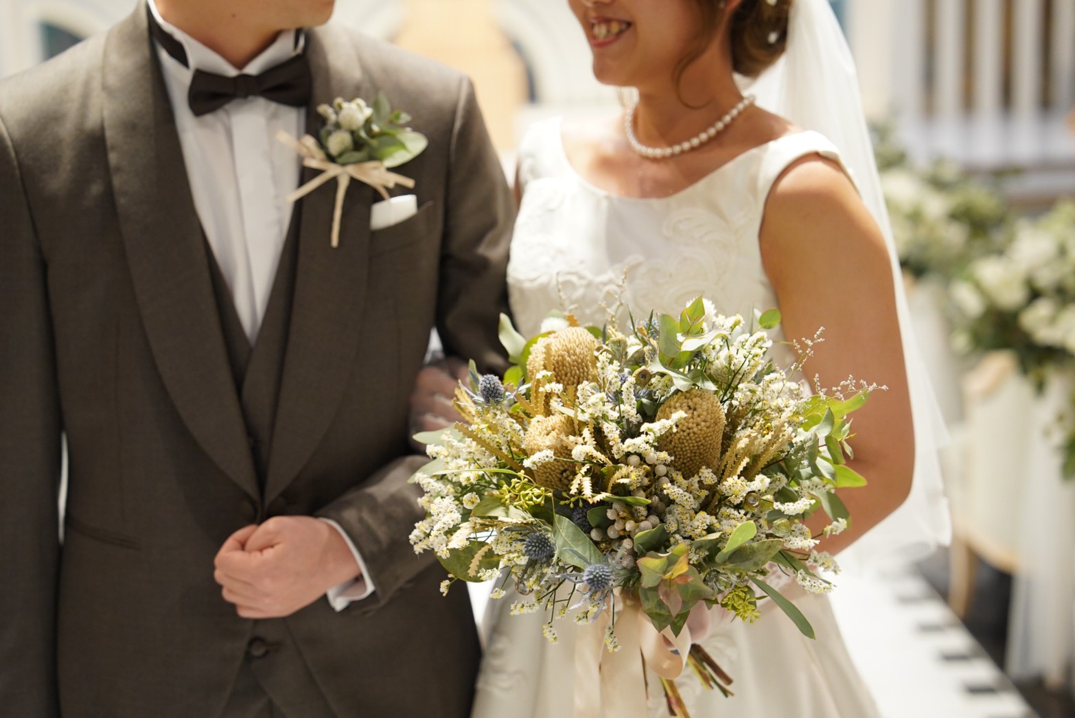挙式中も新郎も最後の支度をしたり、式中の生演奏をリクエストで希望の曲に変更したり柔軟に対応していただきました。教会式でも自分たちらしさをゲストにも感じていただけたかなと思います。