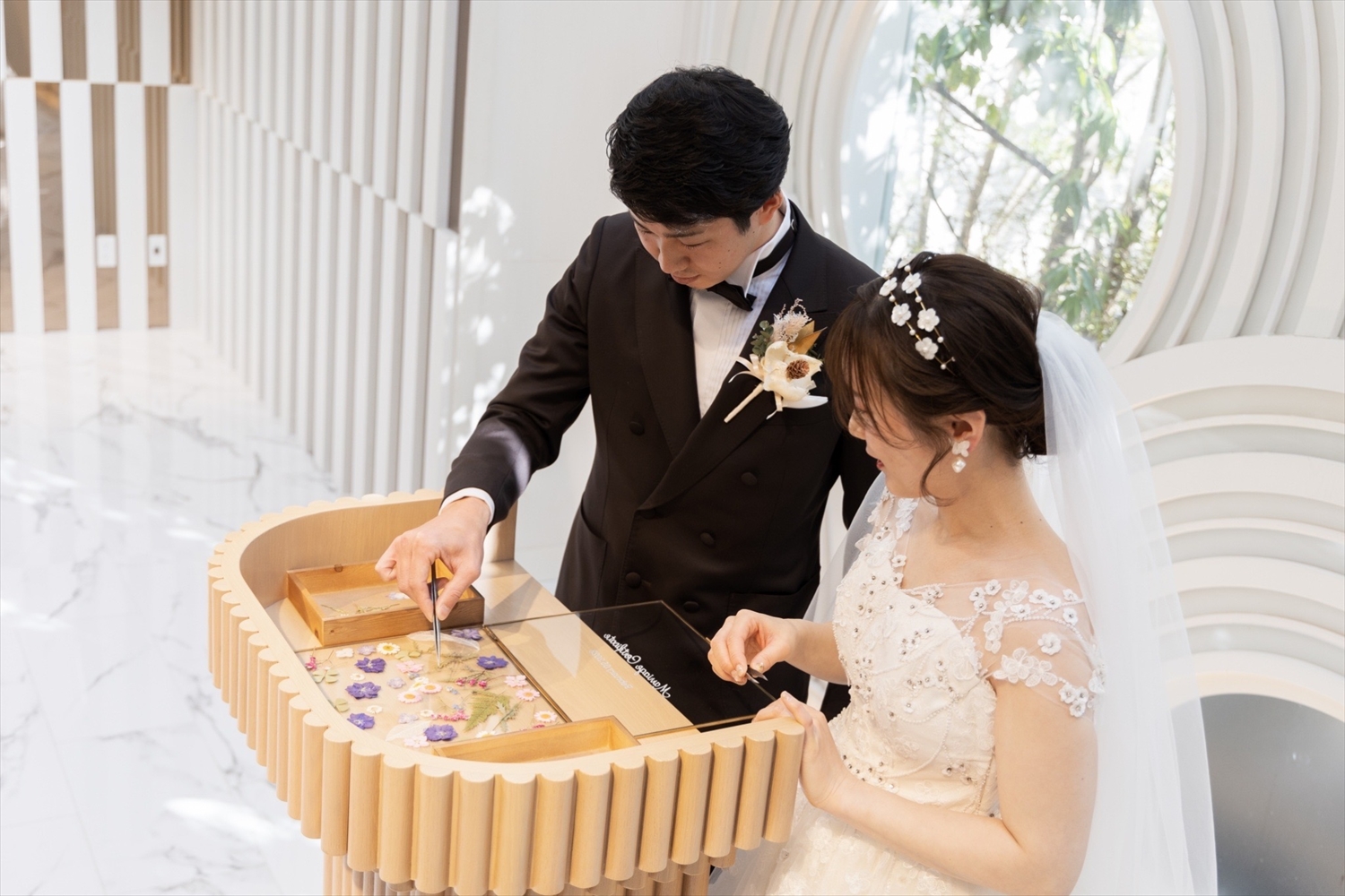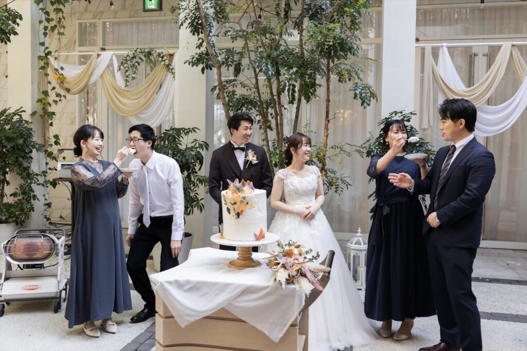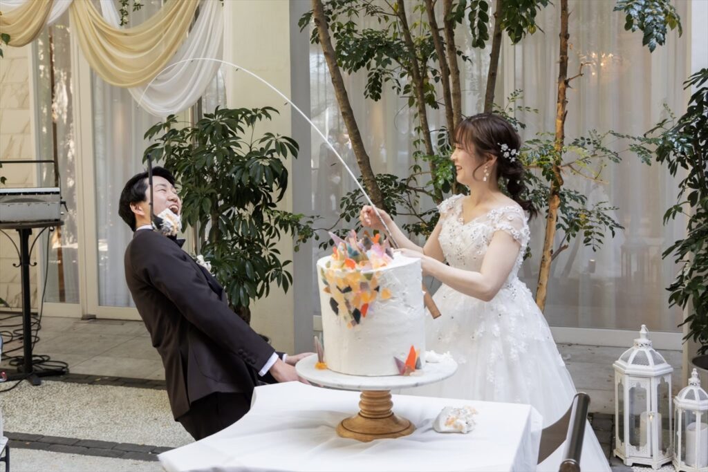 お洒落な琥珀糖を使ったケーキや押し花の結婚証明書など、おふたりらしく、そして可愛らしいアイテムはゲストの皆様にも大好評でした!会場見学の際にご提案させていただいた釣りバイトなどではハプニングもありましたが、おふたりらしさをゲストにも感じていただけたのではないかと思います。